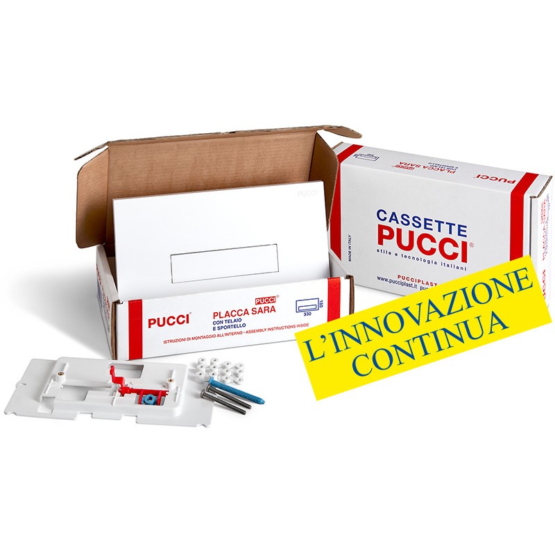Pucci cassette cod. 80179662Placca SARA con telaio e sportello - CROMATA CARATTERISTICHE:Placca SARACompleta di telaio e sportelloDimensioni: 330x180 mm Spessore: 12 mmColore: Cromato Codice prodotto: 80179662