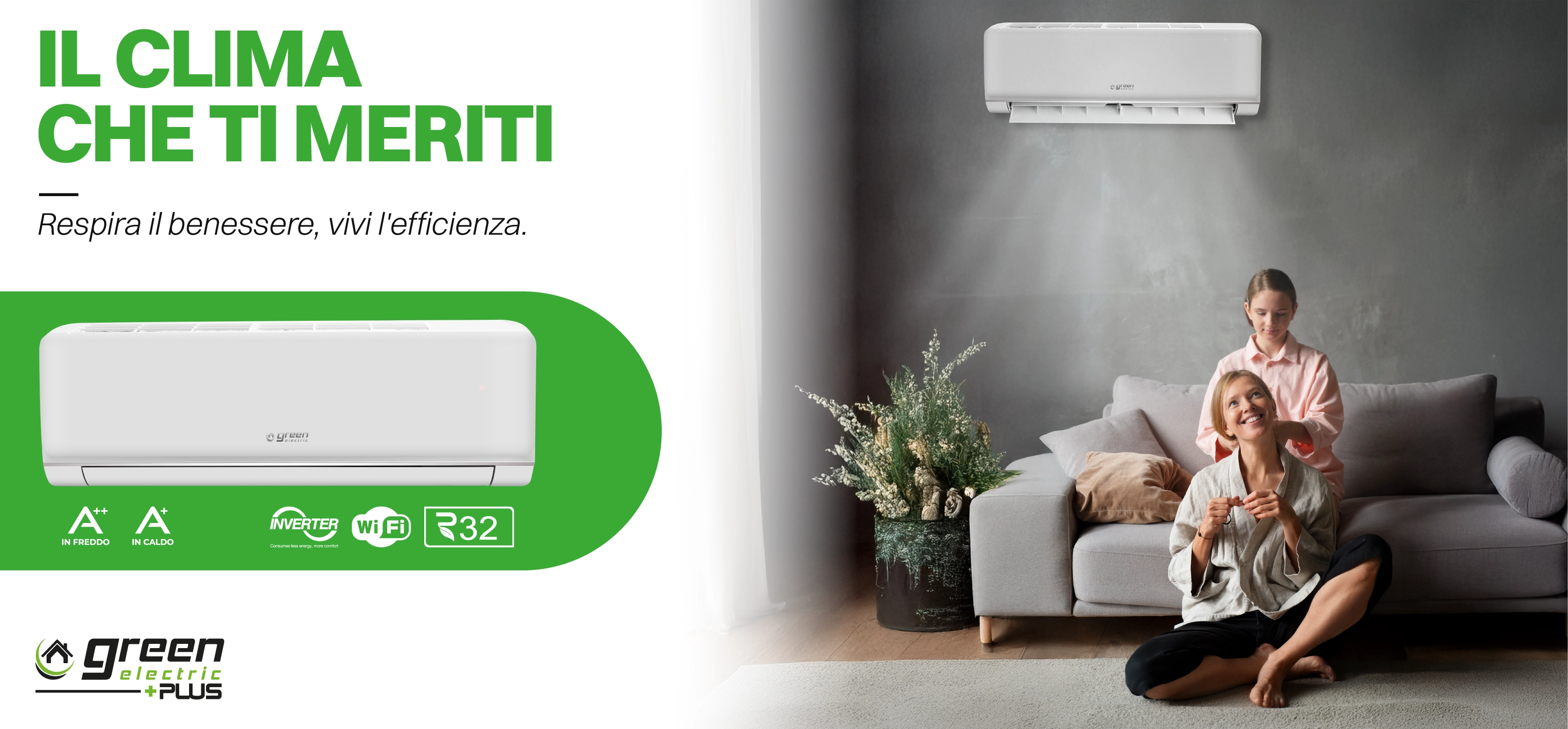 Vai al carrelloClimatizzatore mono 3.5 kW 12000 Btu WiFi R32 A++/A+ Green Electric PLUS