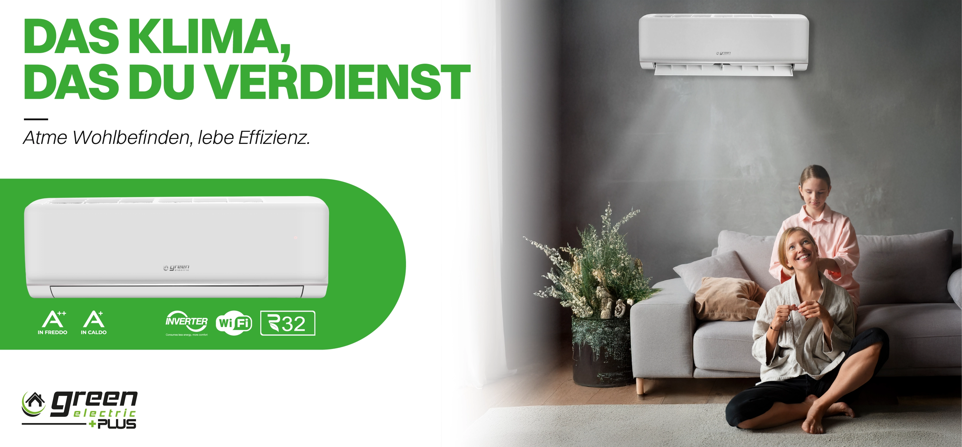Zum Warenkorb gehenKlimaanlage mono 3,5 kW 12000 Btu WiFi R32 A++/A+ Green Electric PLUS