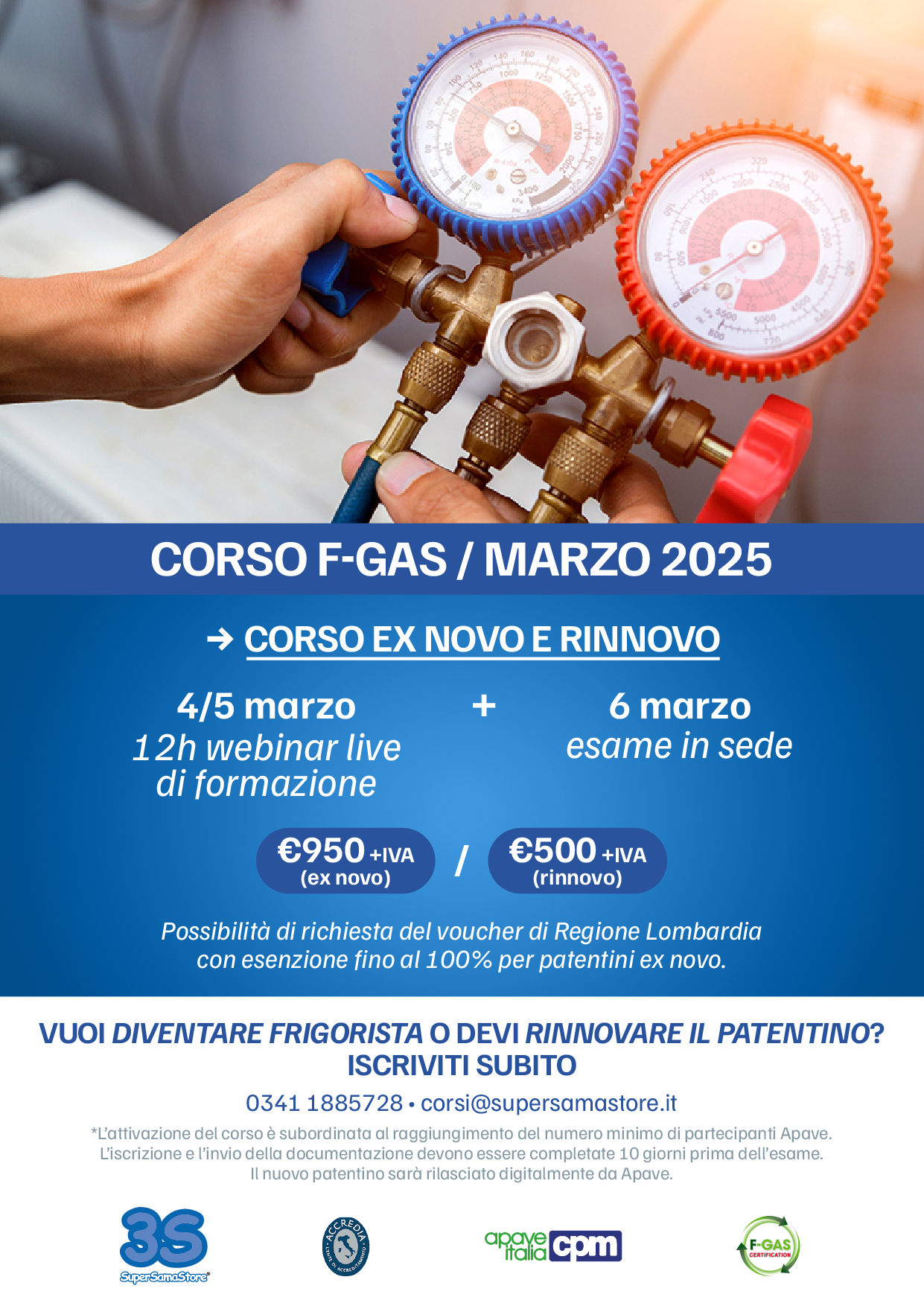 Continuano gli appuntamenti con i corsi F-Gas con rilascio del patentino di operatore per apparecchiature fisse di refrigerazione, condizionamento d’aria e pompe di calore contenenti gas fluorurati ad effetto serra.