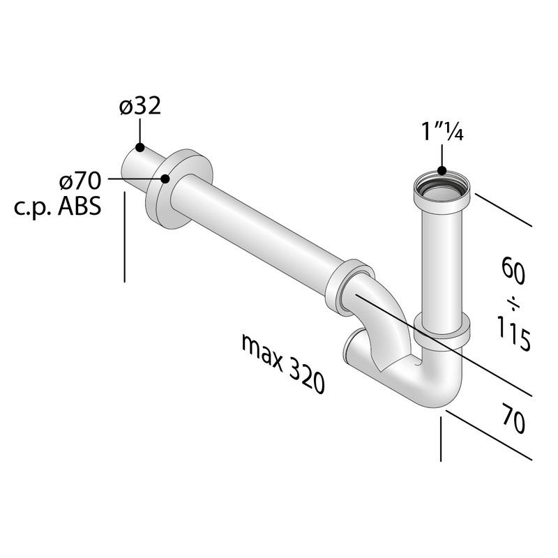 SIFONE a BOTTIGLIA DESIGN MINIMAL TONDO In metallo cromato - Ø 1'1/4 CARATTERISTICHE: -Lunghezza canotto 300 mm D.32 -Altezza max corpo centrale 278 mm (regolabile) -Diametro corpo centrale 44 mm -Corpo centrale (bottiglia) ispezionabile -Attacco filettato 1'1/4 -Completo di Rosone copri foro Codice prodotto: BTSCACVR40