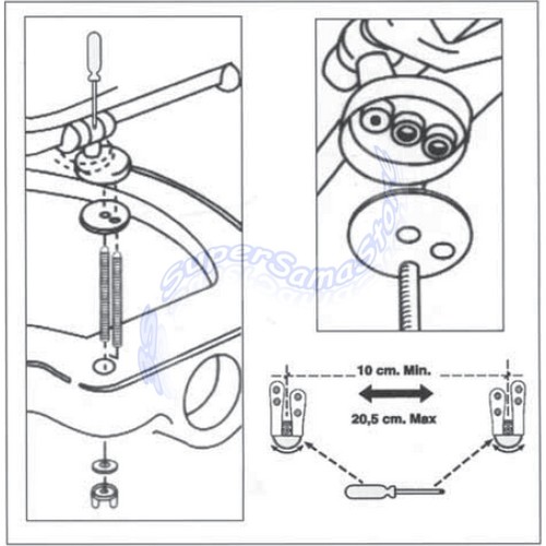 Cerniere in metallo cromato (AL.ZA.R.), a distanza regolabile, viti di fissaggio in inox con farfalle in plastica