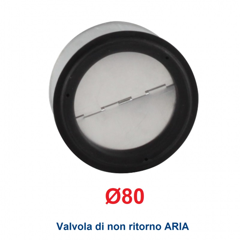 Valvola di NON RITORNO ARIA diametro 80 mm, ideale da installare nelle tubazioni rigide o flessibili. Eviterà il rientro del flusso di aria Fredda o di Odori.