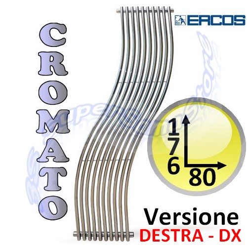 TERMOARREDO CASSIOPEA CROMATO cm 176 H - curva sinistraINTERASSE 170,5 cm - resa termica 520W I TERMOARREDI VENGONO FORNITI CON:- VALVOLINA DI SFIATO- MENSOLE PER IL FISSAGGIO CROMATE- 3 ATTACCHI / FILETTO FEMMINA DA 1/2'Codice prodotto: ASCASS93004301700 ATTENZIONE: L'ORDINE DI QUESTO PRODOTTO VIENE EVASO IN CIRCA 30/35 GIORNI LAVORATIVI