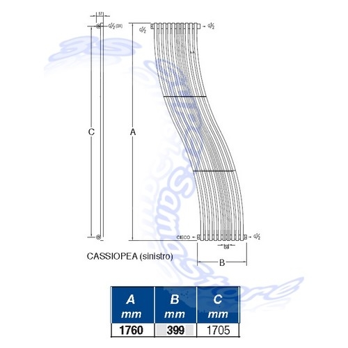 TERMOARREDO CASSIOPEAcm 176 H x 80 L - curva sinistraCOLORE BIANCO - RAL 9010 INTERASSE 170,5 cm - resa termica 797WI TERMOARREDI VENGONO FORNITI CON:- VALVOLINA DI SFIATO- MENSOLE PER IL FISSAGGIO IN TINTA AL TERMOARREDO- 4 ATTACCHI / FILETTO FEMMINA DA 1/2'- COLORE BIANCO - RAL 9010Codice prodotto: ASCASS4301700_9010 ATTENZIONE:L'ORDINE DI QUESTO PRODOTTO VIENE EVASO IN CIRCA 30/35 GIORNI LAVORATIVI