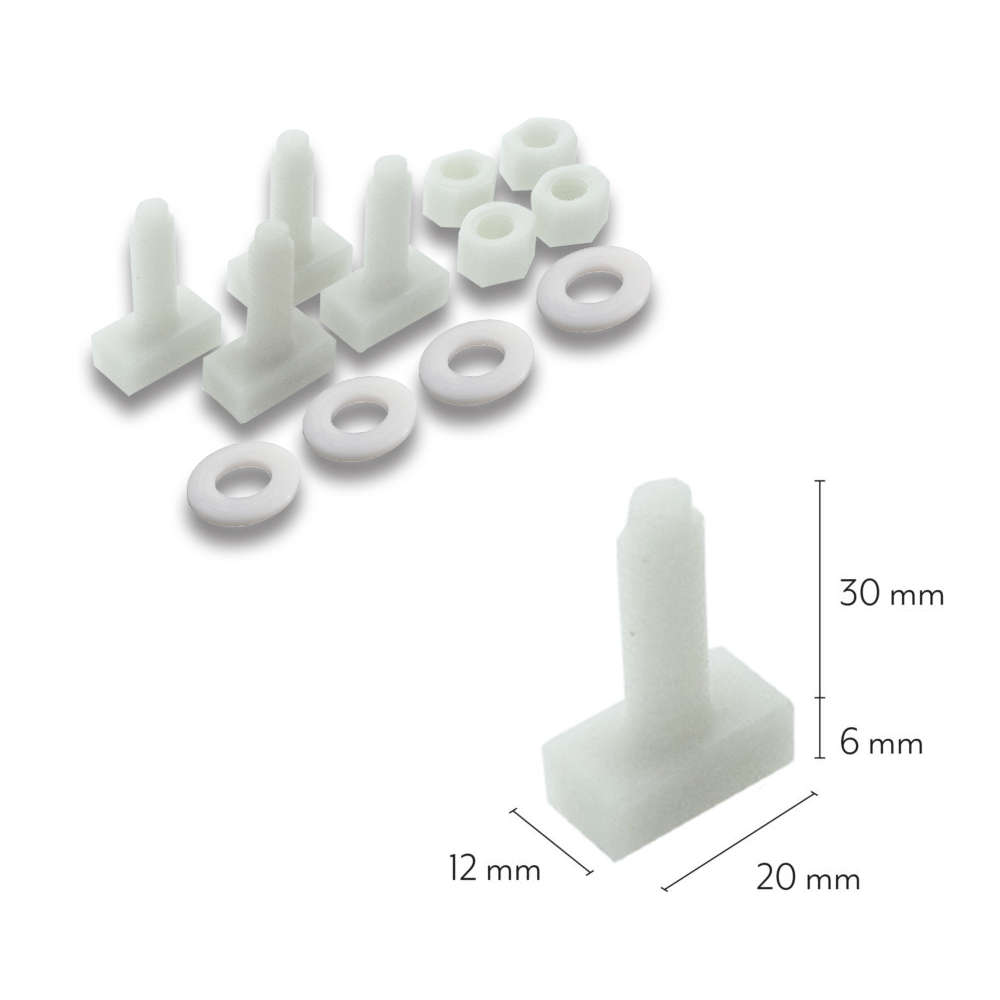 Coppia basi a pavimento 35cm Complete di tappi terminali Portata max 380 Kg. Caratteristiche: Non più polvere, insetti e sporcizia all’interno delle basi. Fornite con un kit di viti e dadi in polyamide molto resistenti e non intaccabili da: ruggine, raggi UV e salsedine. Pronte per l’installazione, agevolano il lavoro perchè complete di tappi già montati non removibili. Sono finalmente possibili installazioni dal design lineare. Codice prodotto: BAC.350