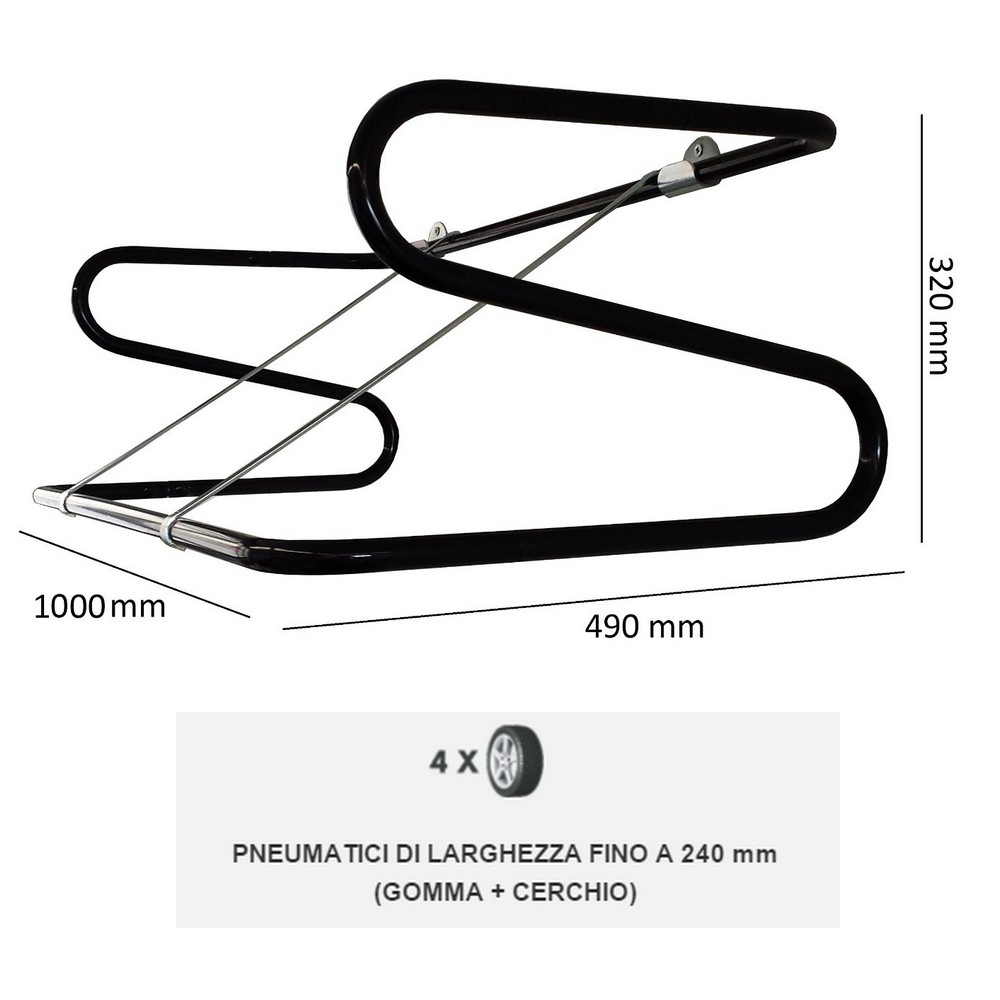 La speciale forma di Orazio tiene distanziate le gomme dal muro, che non si sporcherà durante la posa dei pneumatici.