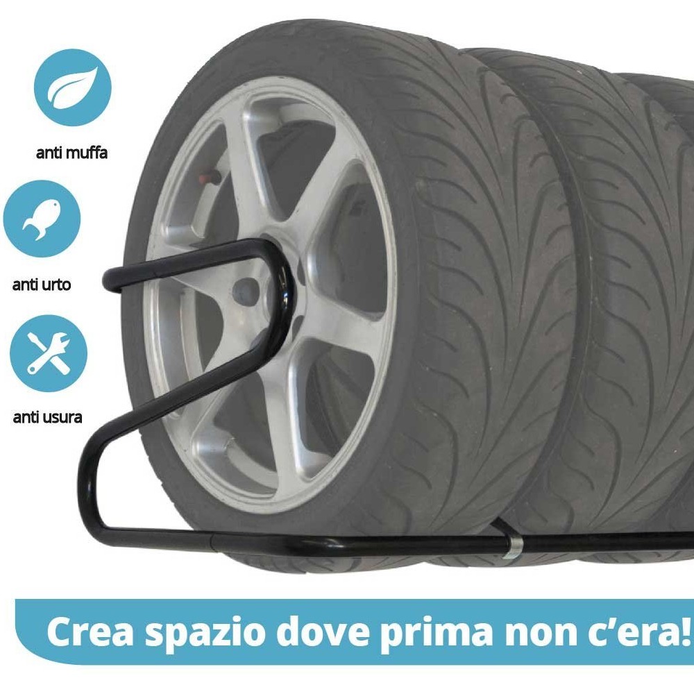 Sopra la serranda del box, in una cantina, o in qualsiasi spazio che prima non veniva utilizzato, Orazio è facilmente collocabile e ti consentirà di stoccare le tue gomme.