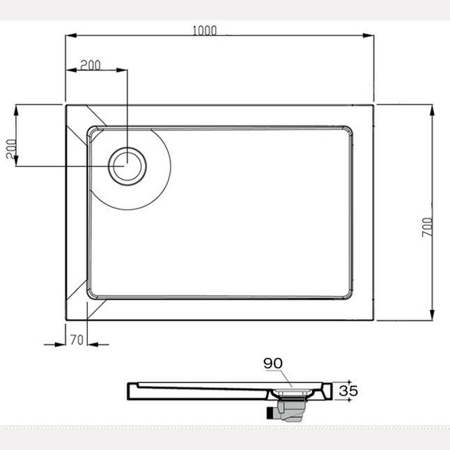 PILETTA PER PIATTO DOCCIA TEA ALTAIR Ribassata - senza griglia Diametro foro piatto doccia 90 mm CARATTERISTICHE: Piletta sifonata in PP per piatto doccia con foro ø90 senza griglia piletta ø108 inox AISI316 uscita laterale 1”½ ingombro sotto piatto doccia 70 Codice prodotto: 6561.106.6