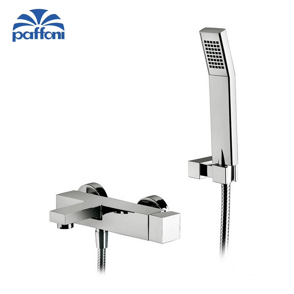 Miscelatore vasca esterno Modello LEVEL - PAFFONI Specifiche: Corpo completamente in ottone cromato; maniglia a cubo; comprensivo di eccentrici e rosoni per il montaggio; Completo di flessibile, doccetta e supporto fisso a parete; 100% MADE IN ITALY Codice prodotto: LEC026-CR