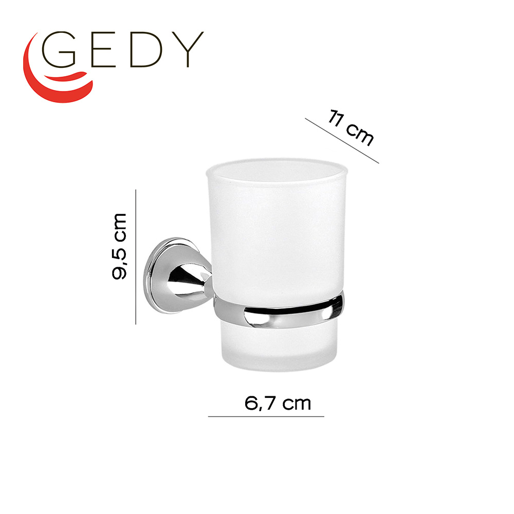 Portaspazzolini ottone cromato e vetro satinato Edera - GEDY Caratteristiche: Misure 11,4 x 9,8 x 9,6 cm; Realizzato in ottone, cromall e vetro satinato; Finitura cromata lucida. Codice prodotto: ED10