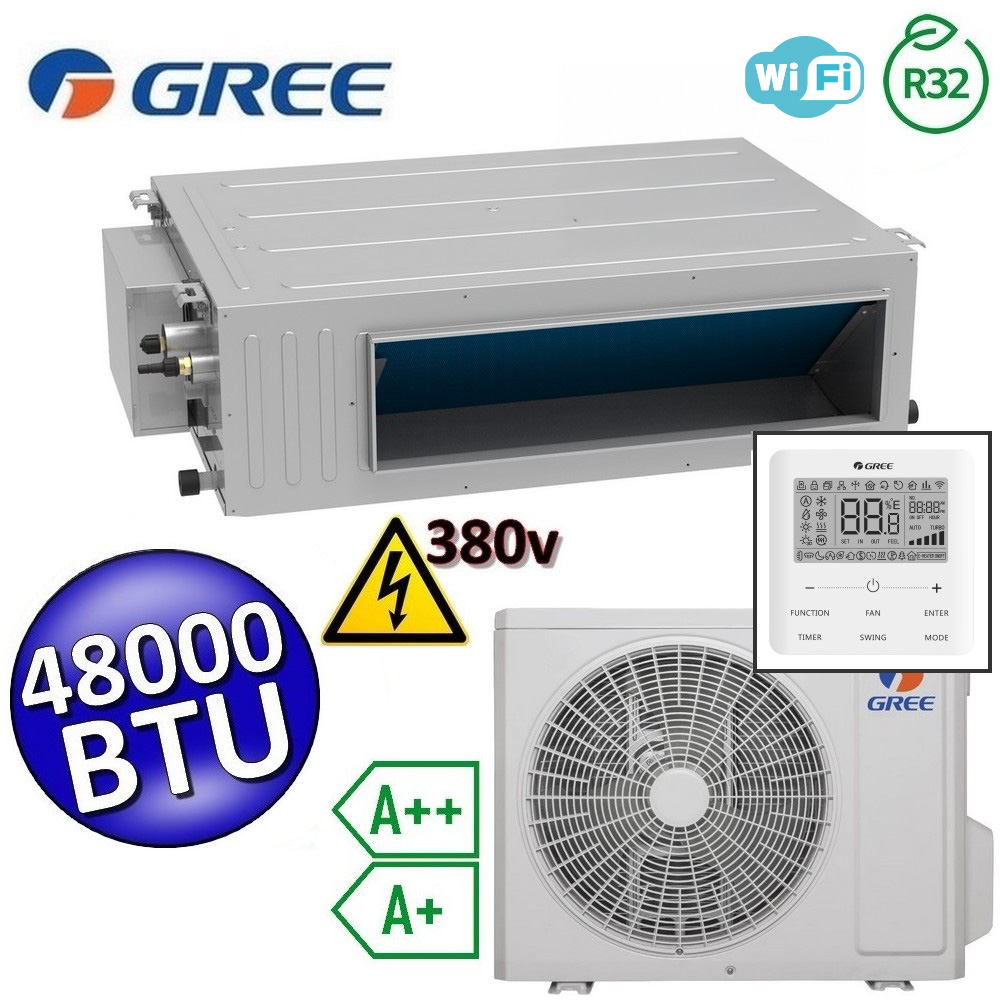 Vai al carrelloClimatizzatore mono canalizzato Gree R32 60000 Btu alta prevalenza 380v - comando incluso U-MATCH 6 - WIFI integrato