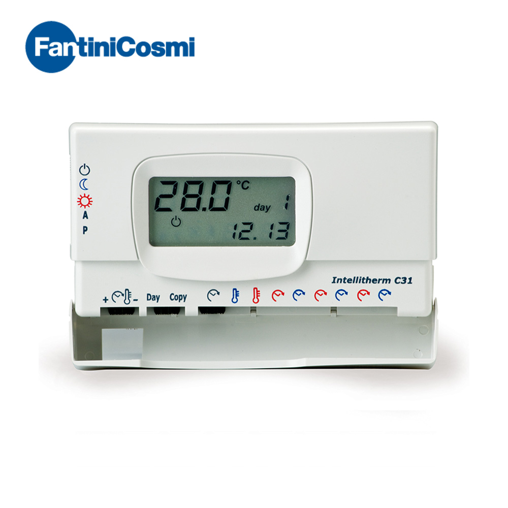 CRONOTERMOSTATO SETTIMANALEda INCASSO - COVER INTERCAMBIABILIFANTINI COSMI CH143AALIMENTAZIONE A CORRENTE 230V 50HzCronotermostato elettronico a microprocessore, con programmazione settimanale per il comando di impianti di riscaldamento e di condizionamento.Il kit comprende:3 COVER COLORATE bianco, silver, antracite3 COVER SPECIALI per BTicino Axolute e Ave Sistema 44 bianco, silver, antracite3 COPPIE DI ADATTATORI COLORATI bianco, silver, antracite1 COPPIA DI ADATTATORI per BTicino Matix bianco2 TELAI per offrire compatibilità con le più diffuse placchePlacche non compreseCodice prodotto: CH143A