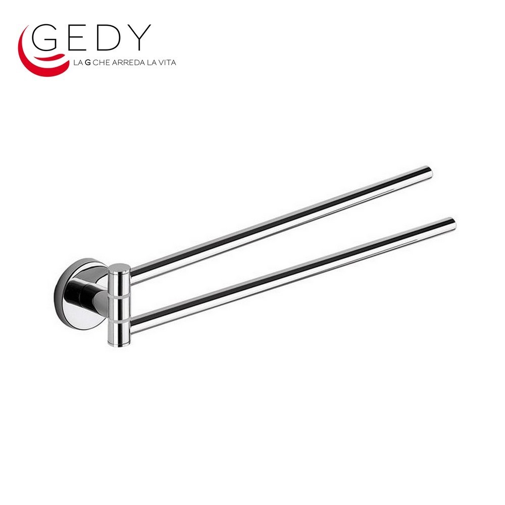 Portasalviette doppio a snodo Colorado - GEDY Caratteristiche: Misure 4x36x5,5 cm; Realizzato in ottone e acciaio inox; Finitura cromata lucida; Braccetti a snodo con movimento a 180°. Codice prodotto: 6923
