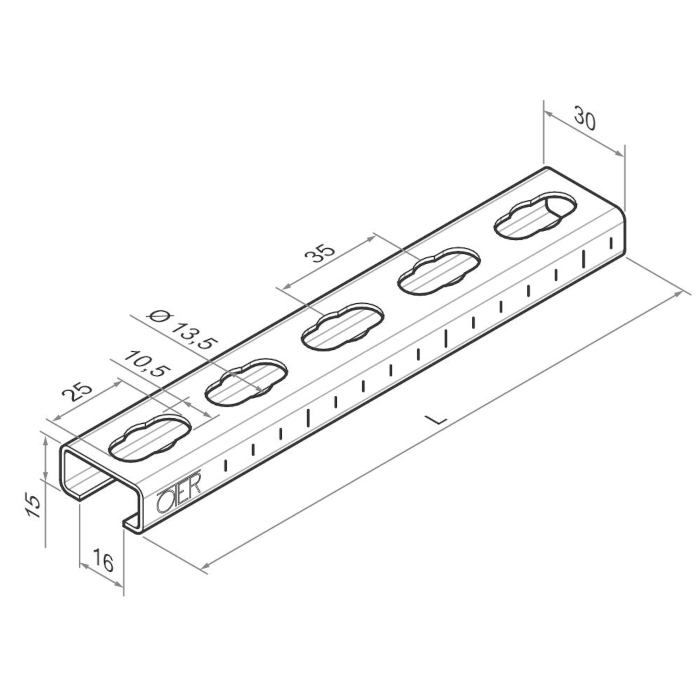 il profilato 30x15 appartiene alla gamma dello staffaggio leggero. E’ di spessore 1,5 mm e le verghe hanno una lunghezza di 2,00 m. E’ compatibile con tutti gli accessori e componenti appartenenti allo staffaggio leggero. Su uno dei lati sono presenti tacche graduate che ne facilitano il taglio a misura anche in cantiere. Sulla schiena del profilato, invece, sono presenti ampie asole che consentono numerose regolazioni d’installazione.