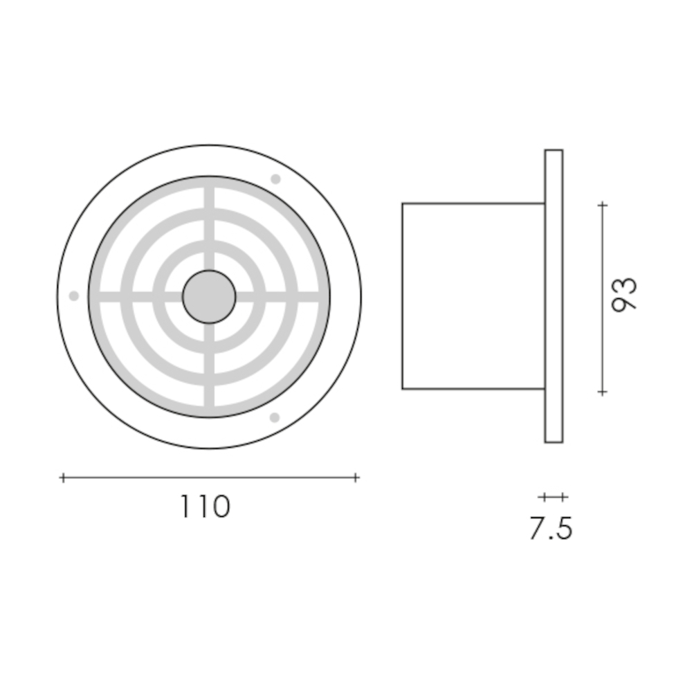 Ventilatore aspiratore domestico per espulsione diretta all'esterno diametro 100mm - mascherina interna colore cromo satinata con TIMER regolabile - ritardo spegnimeto CARATTERISTICHE Diametro 100mm Realizzati in ABS anti UV e antistatico Motore a induzione Classe Isolamento IPX4 Alimentazione 230v - 50Hz Rumorosità: 28 dB(A) Volume d'aria trattato 105 m3/hr Consumo: 7 watt Con TIMER regolabile per ritardo dello spegnimento Codice prodotto: FH100T.S
