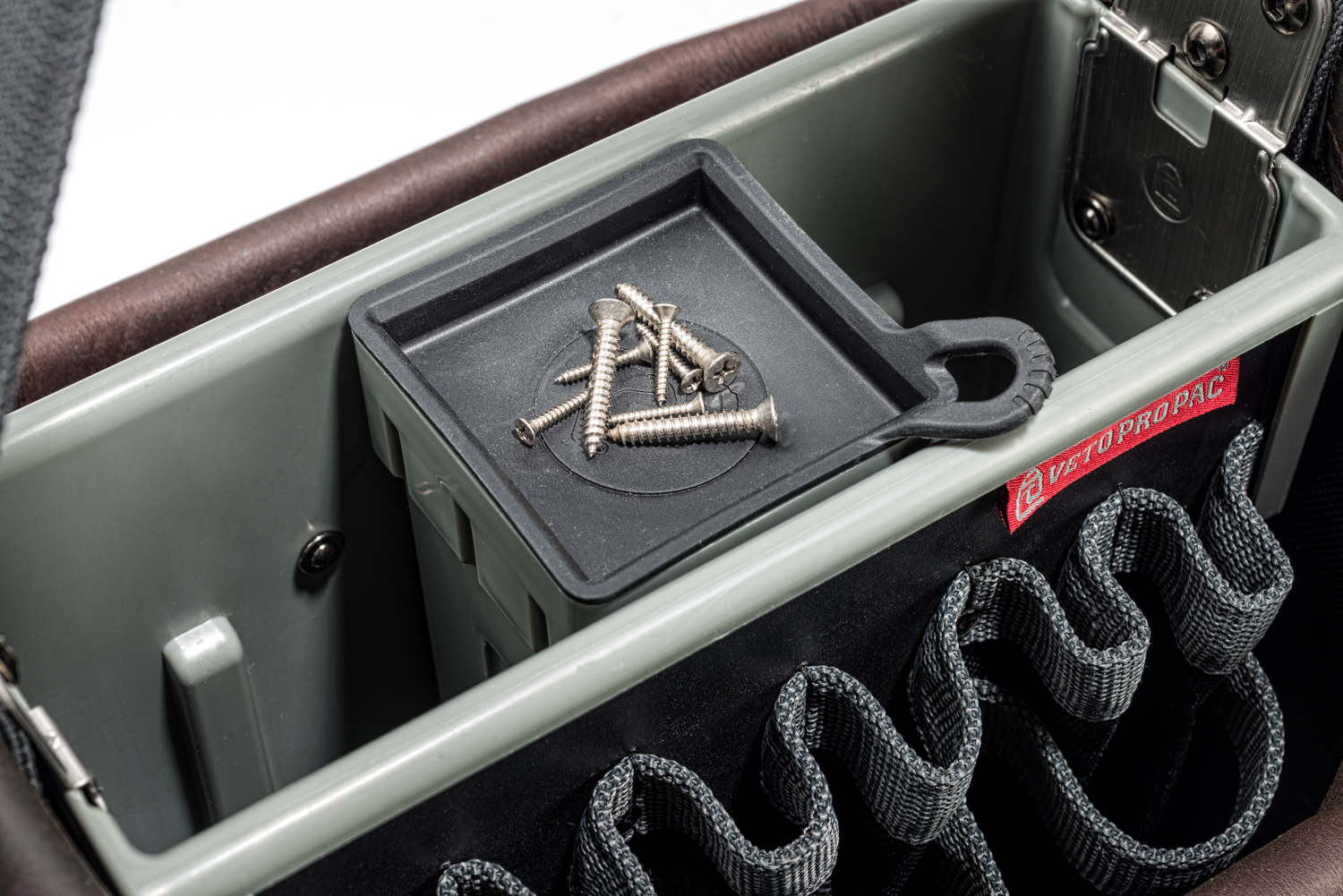 VETO PRO PAC - WRENCHER-XXL BORSA APERTA ORIZZONTALE - 5 ANNI DI GARANZIA l WRENCHER-XXL è stato progettato sulla base di intuizioni professionali e presenta un interno in tela cerata che respinge l'acqua e un vassoio imbottito rimovibile ideale per bottiglie di campioni d'acqua, utensili manuali lunghi o utensili elettrici. La base impermeabile in polipropilene stampato ad iniezione è ideale per scantinati umidi e vespai fangosi. L'orientamento orizzontale del WRENCHER-XXL è ideale quando gli strumenti sono lunghi ma potresti non avere spazio per una borsa molto alta nel tuo furgone, spazio di lavoro o spazio di archiviazione. Numerose piccole tasche verticali, perfette per piccoli utensili manuali, popolano l'esterno della borsa. All'interno un vassoio imbottito rimovibile è perfetto per contenere diverse bottiglie di campioni d'acqua, lunghi utensili manuali o alcuni utensili elettrici. La borsa è saldamente rivettata a una base in polipropilene impermeabile stampata a iniezione, perfetta per appoggiarsi sul pavimento umido del seminterrato o trascinarsi attraverso un gattonare fangoso. SPECIFICHE DEL PRODOTTO: Altezza (A): 13' (33 cm) Larghezza (L): 26' (66 cm) Profondità: 10,5' (26,5 cm) Altezza della maniglia (HH): 17 '(43 cm) Peso (vuoto): 8 libbre/3,5 kg Volume interno: 1980in3/32.5L Carico utile massimo: 60 libbre / 27 kg CAPACITÀ DI STOCCAGGIO UTENSILI MASSIMA: L'interno in tela cerata facilmente pulibile respinge l'acqua Può funzionare sia come borsa orizzontale aperta che come borsa a bocca di lupo chiudibile Manici in pelle e tracolla imbottita extra lunga Oltre 20 tasche esterne per piccoli utensili manuali, strumenti di scrittura o punte per driver Sistema di pannelli tascabili per attrezzi rimovibili V-SWAP™ Vassoio portautensili interno con maniglie per il trasporto ideale per flaconi di campioni per la valutazione del rischio idrico o contenitori imbottiti rimovibili Base in plastica impermeabile in polipropilene per protezione dall'umidità e dall'abrasione Codice prodotto: AX3629