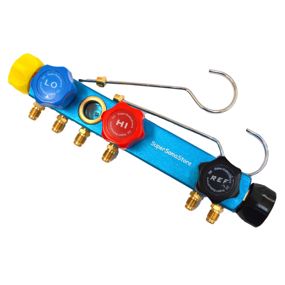 BASE in ALLUMINO PORTAMANOMETRI 4 VIE e 4 RUBINETTI - uscite 5/16' sae CARATTERISTICHE: - 4 RUBINETTI CON INDICAZIONI: HI - LO - VAC - REF - 2 ATTACCHI FEMMINA DA 1/8 npt , NELLA PARTE SUPERIORE - 4 ATTACCHI MASCHIO 5/16 sae , NELLA PARTE INFERIORE - OBLO' IN VETRO CENTRALE per LA VISUALIZZAZIONE DEL FLUIDO DI PASSAGGIO - GANCIO AD UNCINO PER APPENDERE LA BASE Codice prodotto: BSMU4V
