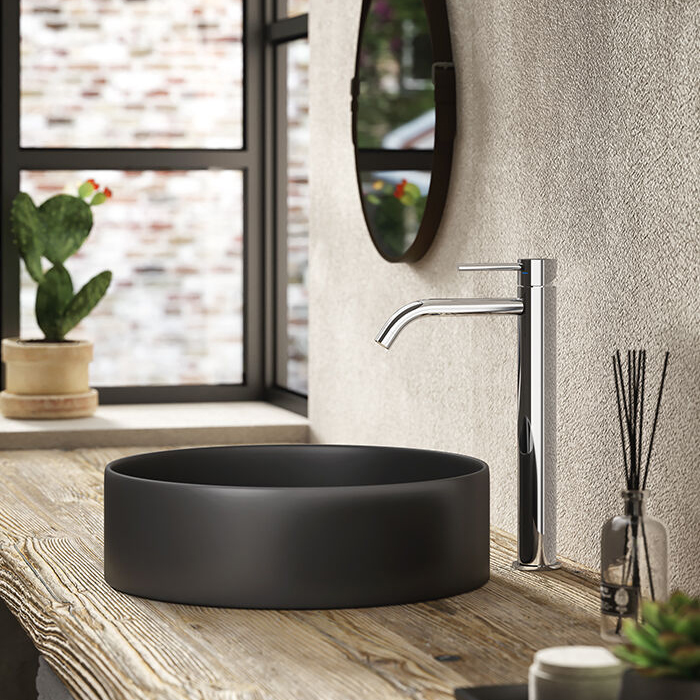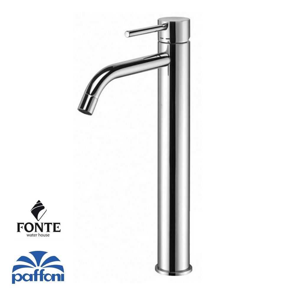 Serie GREEN - PAFFONI Miscelatore lavabo alto prolungato senza piletta Specifiche: Corpo completamente in ottone cromato; Aeratore M24X1 Slim Air; Senza piletta di scarico; Comprensivo di flessibili di collegamento; 100% MADE IN ITALY. Codice prodotto: GR081CR