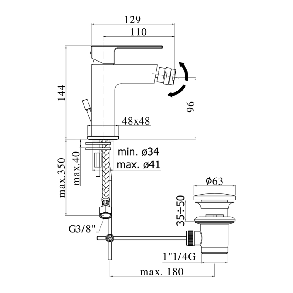 Miscelatore bidet leva clinica con piletta - DELUXE