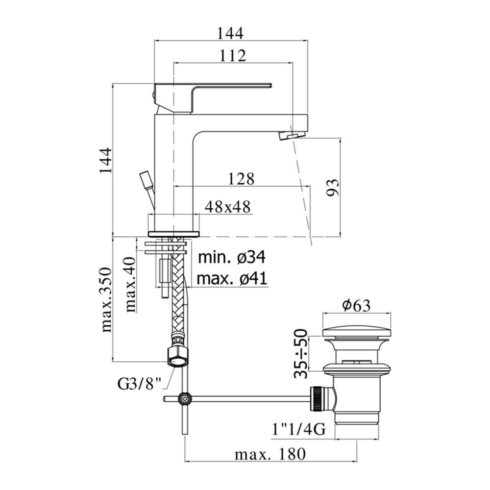 Miscelatore lavabo prolungato c/piletta 1''1/4 LEVEL Paffoni