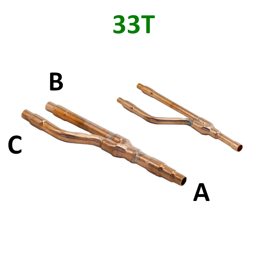 Giunto di derivazione VRV / VRF 73T Caratteristiche: MODELLO LINEA A B C 11T Linea Vapore 19,05/15,88 15,88/12,70 15,88/12,70 Linea Liquido 9,52 9,52/6,35 9,52/6,35 22T Linea Vapore 19,05/15,88/12,70 19,05/15,88 15,88/12,70 Linea Liquido 9,52 9,52/6,35 9,52/6,35 33T Linea Vapore 19,05/22,22 19,05/15,88 15,88/12,70 Linea Liquido 12,70/9,52 9,52/6,35 9,52/6,35 37T Linea Vapore 25,4/28,58/31,80 25,40/19,05/15,88 19,05/15,88/12,70 Linea Liquido 12,70/15,88 12,70/9,52 12,70/9,52/6,35 40T Linea Vapore 31,80/38,10 31,80/28,58/25,40 25,40/19,05/15,88 Linea Liquido 19,05/15,88 19,05/15,88/12,70 15,88/12,70/9,52 72T Linea Vapore 24,40/28,58/31,80 25,40/19,05/15,88 19,05/15,88/12,70 Linea Liquido 12,70/15,88 12,70/9,52 12,70/9,52/6,35 73T Linea Vapore 31,80/38,10 31,80/28,58/25,40 25,40/19,05/15,88 Linea Liquido 19,05/15,88 19,05/15,88/12,70 15,88/12,70/9,52 Codice prodotto: 73T