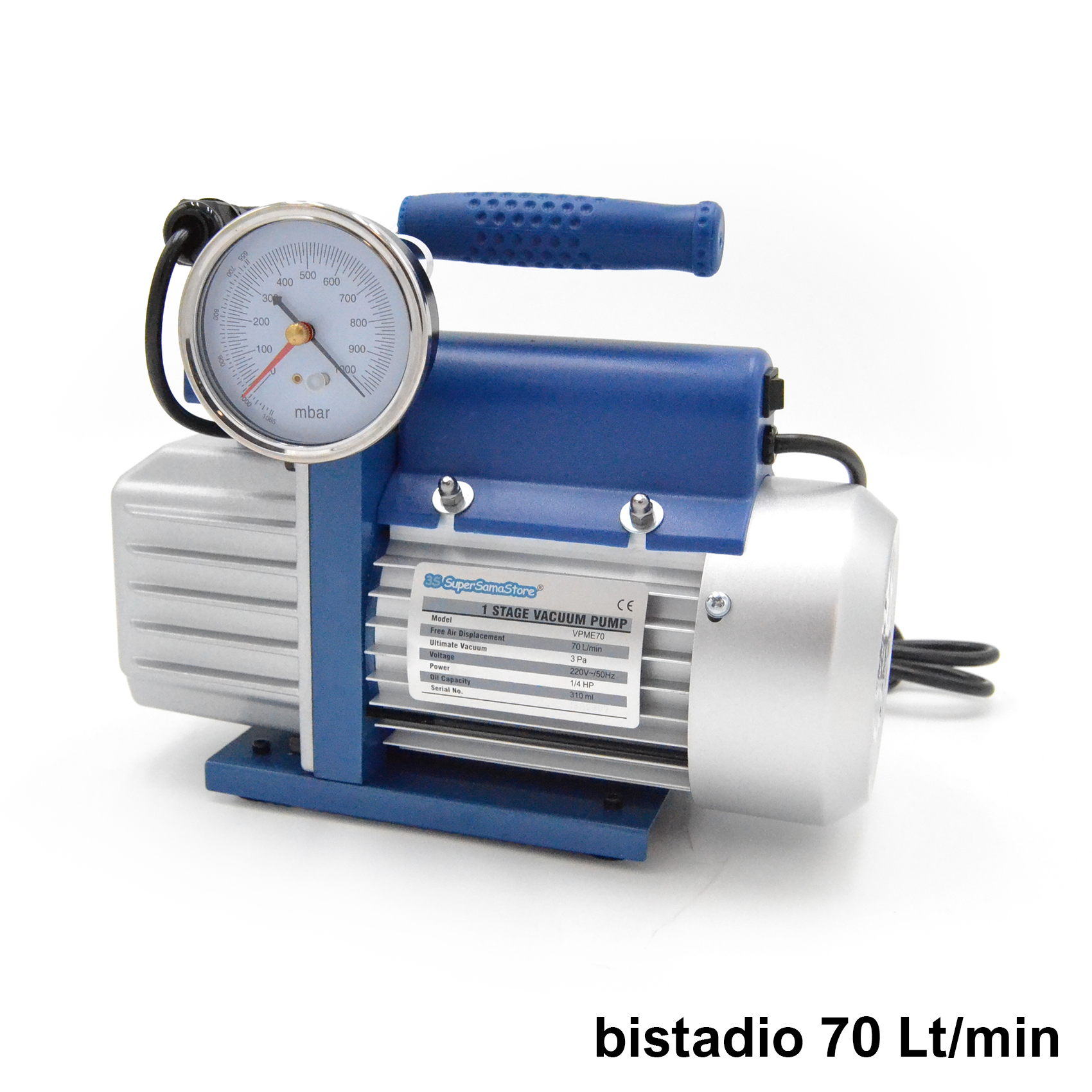 Vai al carrelloPompa vuoto bistadio 70 Lt/min per impianti gas R32 R1234YF - vacuometro ed elettrovalvola