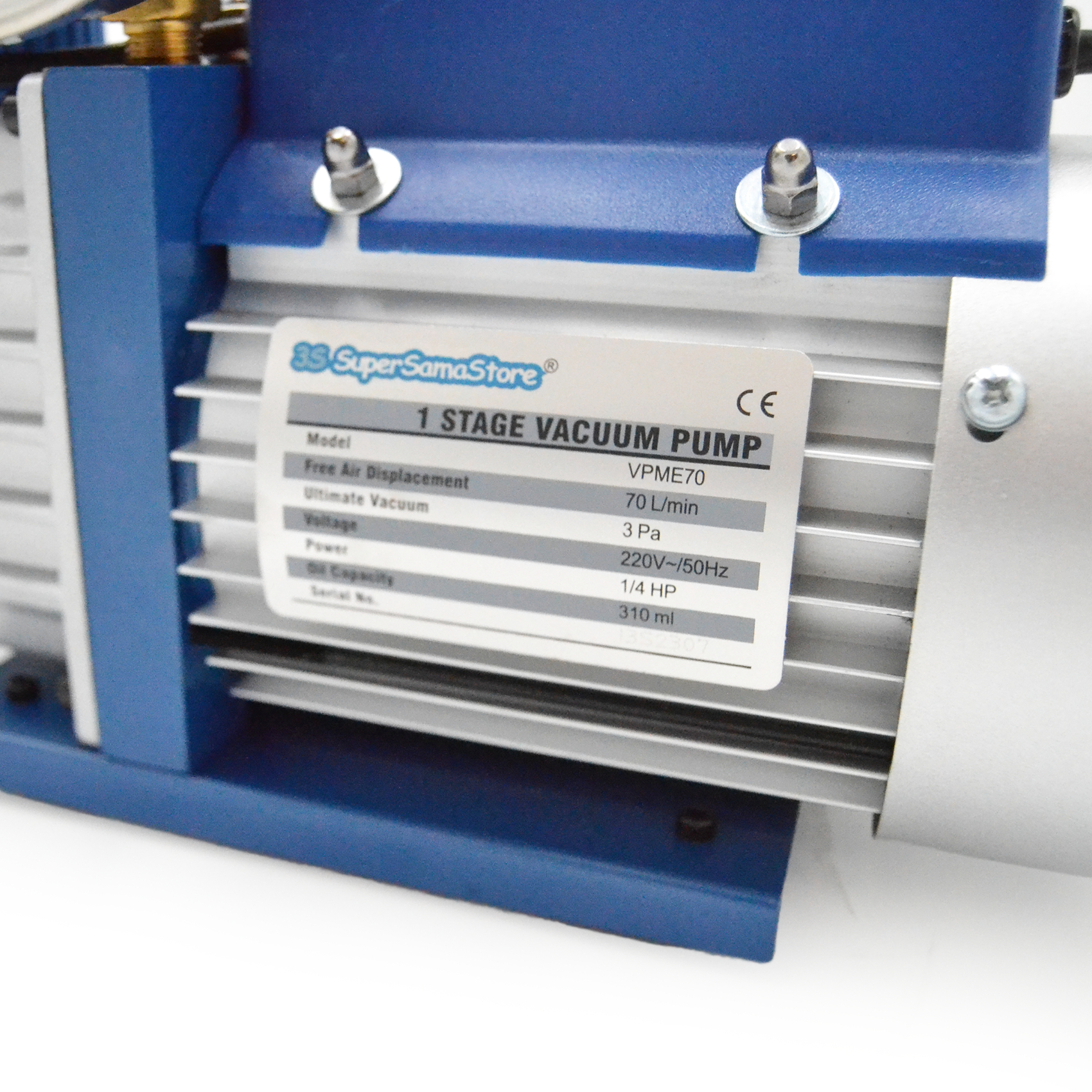 POMPA DEL VUOTO BISTADIO 70 Lt/min con ELETTROVALVOLA e VACUOMETRO - PER GAS R32 R1234YF per svuotamento secondo DIN 8975 Caratteristiche: Modello bistadio da 70 litri al minuto - specifica per gas r32 e r1234yf per svuotamento secondo din 8975. Questo modello di pompa è realizzato con un particolare isolamento ignifugo sulle componenti elettriche, che le consente di essere certificata contro eventuali scoppi o deflagrazioni causati dall'infiammabilità dei gas r32 e r1234yf. La pompa può essere utilizzata anche su impianti con altri gas refrigeranti come: r410a, r407c, r404a, r22... fornita di vacuometro per visualizzare l'operazione del vuoto fornita di elettrovalvola per evitare ritorni d'olio in caso di black-out accidentale dotata di interruttore on-off indicatore del livello dell'olio 1 confezione di olio inclusa cavo di alimentazione con spina schuko maniglia ergonomica per il trasporto dati tecnici: modello bistadio capacità di aspirazione: 70 litri al minuto - 2,5 cfm potenza motore: 1/3 hp alimentazione: 220 v - 50 hz vuoto finale: 3x10-1 pa - 0,003 mbar olio nella pompa: 310 ml dimensioni: 320x160x240 mm peso: 9,3 kg attacco: 1/4'' sae Codice prodotto: VPBE70/32