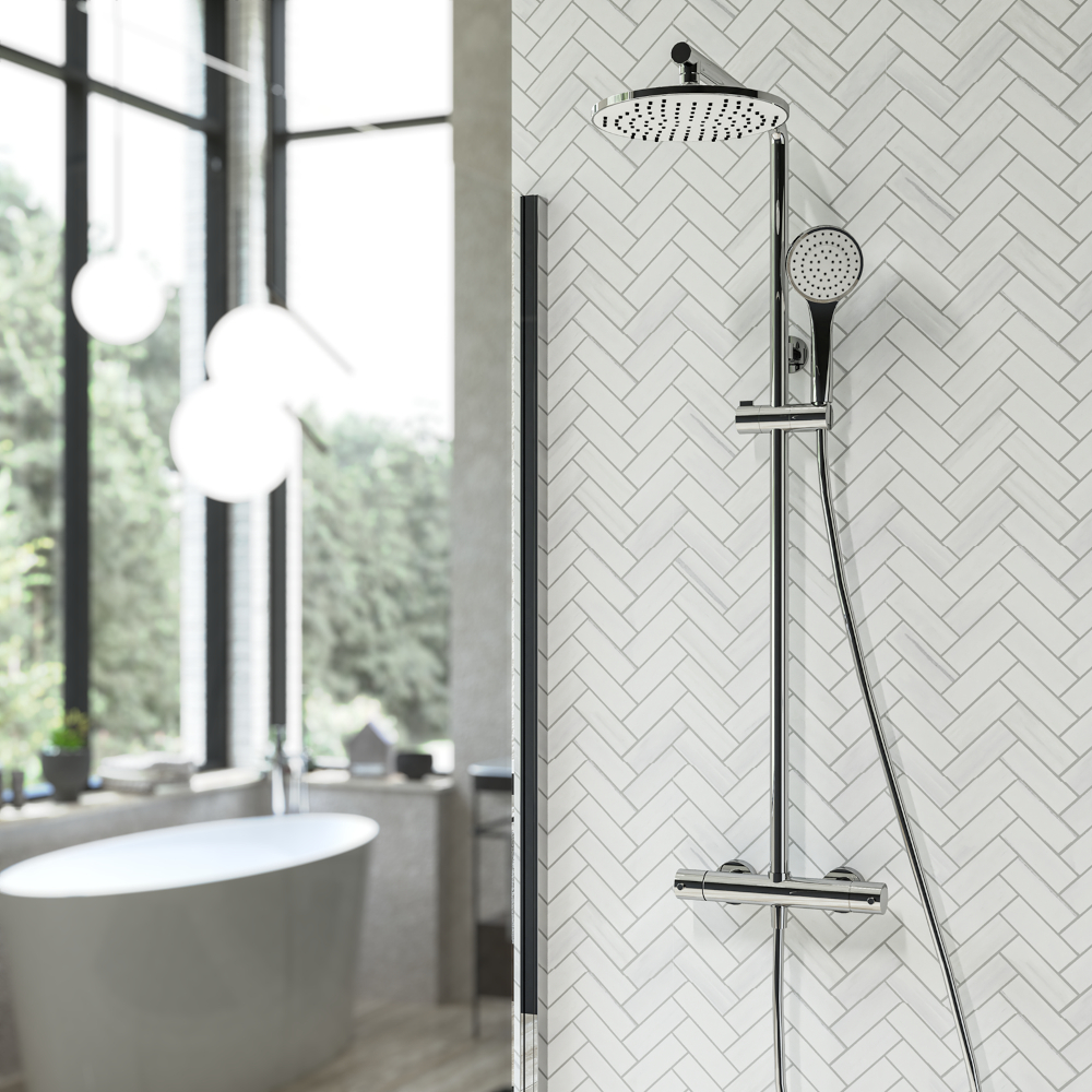 COLONNA DOCCIA SQUARE CON MISCELATORE TERMOSTATICO DESCRIZIONE: Colonna con miscelatore termostatico e deviatore a due vie, caratterizzata da un design moderno e interessante e garanzia di comfort e benessere. Questa colonna doccia della Serie Square è caratterizzata, come suggerisce il suo nome, da linee squadrate e moderne, che la rendono un prodotto capace di integrarsi armoniosamente anche nei bagni più ricercati e al passo coi tempi. Dotata di miscelatore termostatico e deviatore a due vie in dischi ceramici, si distingue per la pulizia delle forme ed è in grado di offrire un’esperienza di totale relax e benessere all’utente. Realizzata in acciaio INOX, è facile da pulire, non necessita di particolari trattamenti, è molto resistente e progettata per durare nel tempo. La doccetta in ottone inclusa è caratterizzata dalle stesse linee squadrate, è pratica, maneggevole e anch’essa molto resistente. CARATTERISTICHE: • Colonna con miscelatore termostatico • Altezza: 1029mm • Flessibile anti torsione conico L1500mm • Attacchi: Eccentrici 1/2″G • Peso: 6,0kg • Materiale: Ottone ABS acciaio • Finitura: Cromato • Doccetta in ottone • Soffione in acciaio INOX • Deviatore a due vie in dischi ceramici • Dimensioni soffione: 250x250mm • Portata minima 1 Bar: 6,6 L/Min • Portata massima 5 Bar: 9,9 L/Min Codice: BNCOLCQTRM0011