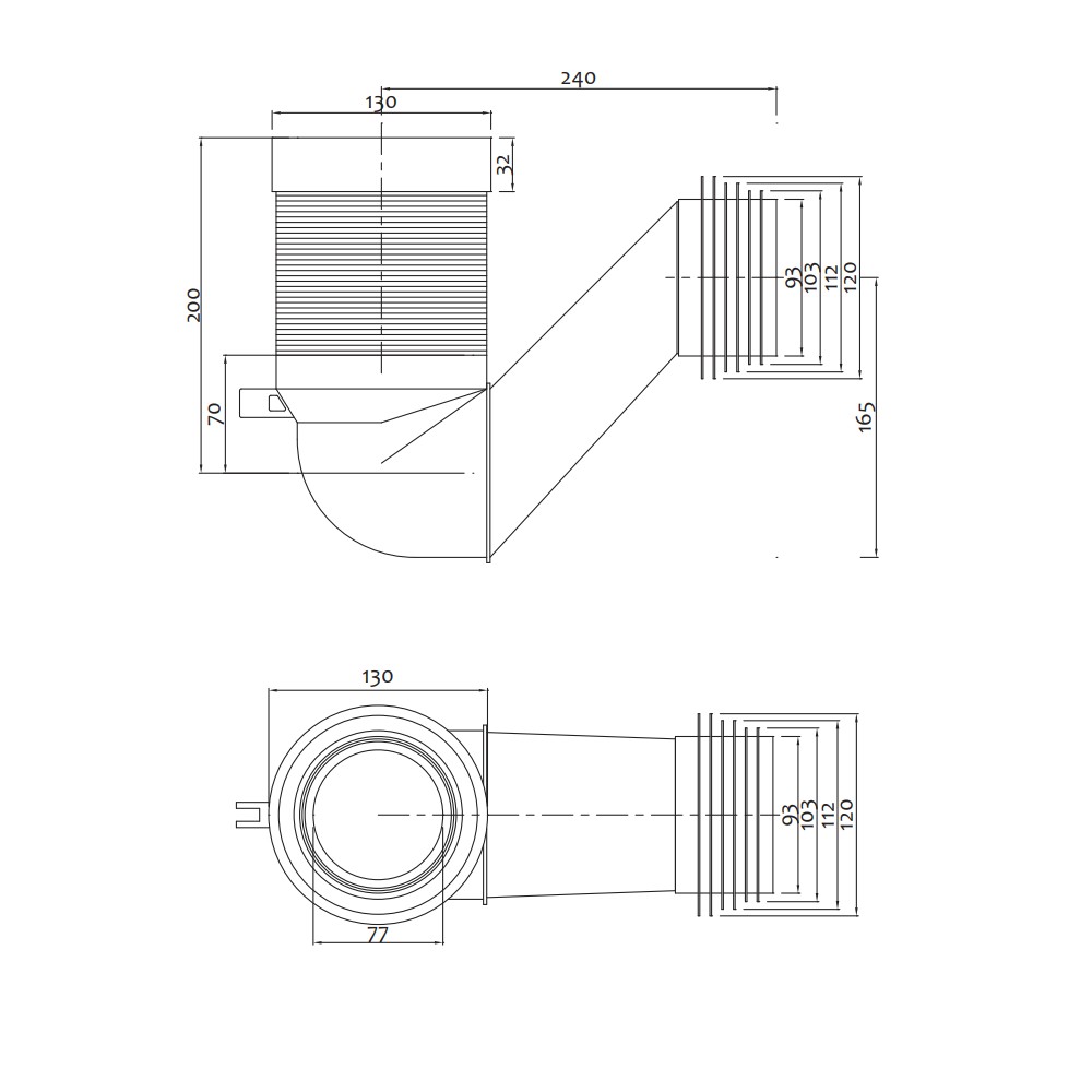 CURVA TECNICA FLESSIBILE per scarico wc a pavimento estensibile da 27 a 45 cm CARATTERISTICHE: Estensibile da 27 a 45 cm Lato wc Ø80-110 Lato scarico Ø96 - Ø107 - Ø123 Completa di guarnizioni, sia lato wc che lato scarico pavimento Codice prodotto: 943C
