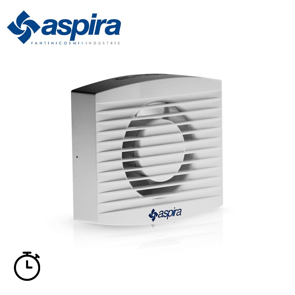 Aspiratore elicoidale per espulsione diretta all'esterno o in condotto breve - extra piatto 17 mm con TIMER per spegnimento posticipato EV 10/4' T - ASPIRA DESCRIZIONE: Aspiratori elicoidali extrapiatti predisposti per espulsione diretta all'esterno in condotto breve e installazione a parete, versione con TIMER. Il design raffinato, le prestazioni, la silenziosità di funzionamento e la minima sporgenza dal muro di solo 17 mm, unitamente alle soluzioni tecnologiche atte a facilitarne l'installazione, rendono la linea EV sicuramente unica nel suo genere inserendola in qualsiasi tipo di ambiente come sobrio ed elegante elemento di arredo. L'installazione è semplice, rapida e sicura grazie al suo sistema di fissaggio alla parete. E' sufficiente avvitare le due viti all'interno dell'aspiratore per consentire alle mollette laterali di agganciarsi alla tubazione garantendo un fissaggio stabile e duraturo. CARATTERISTICHE: Diametro: Ø100 mm. Costruito in materiale plastico ABS, antiurto e termoresistente. Motore ad induzione - Classe Is. B – Rpm 2500 con boccole autolubrificanti. Protezione mediante termofusibile incorporato nel motore. Sistema di fissaggio a muro ad espansione, senza l'utilizzo di trapano, viti e tasselli. Lampada di segnalazione del funzionamento. Codice prodotto: AP0398