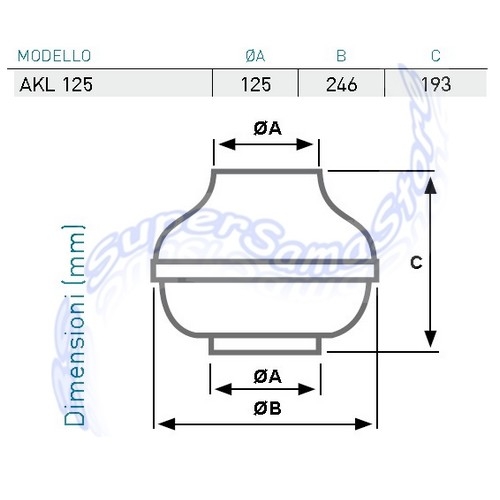 Aspiratore centrifugo per impianti d'aspirazione AKL 100 - ASPIRA DESCRIZIONE: Gli aspiratori centrifughi della serie AKL sono stati progettati per essere utilizzati in ambienti commerciali o industriali su impianti di aspirazione ove neccessitano piccole e/o medie portate d'aria con discrete pressioni. La caratteristica costruttiva di questi aspiratori permette di installarli in linea su qualsiasi punto della canalizzazione CARATTERISTICHE: Struttura in lamiera di acciaio galvanizzato verniciata con polveri epossidiche. Gruppo motore con girante a pale rovesce incorporata allo statore. Classe Is.B o F - IP44, cuscinetti 'long life' e protezione termica. Funzionamento per servizio continuo con temperatura dell'aria aspirata max 60°C. Alimentazione con tensione 230V - 60Hz. Codice prodotto: AP8482
