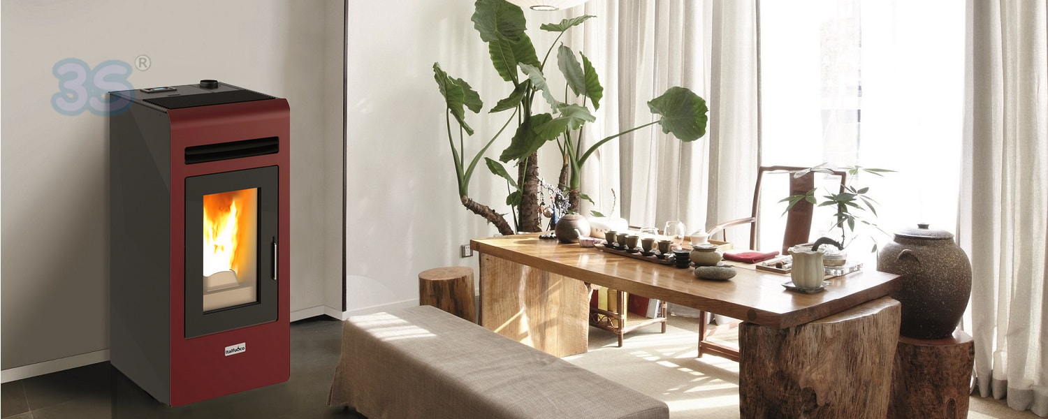 Vai al carrelloStufa a pellet Italfuoco Acciaio potenza 9Kw 200 m³ bordeaux con telecomando - DS.09UX