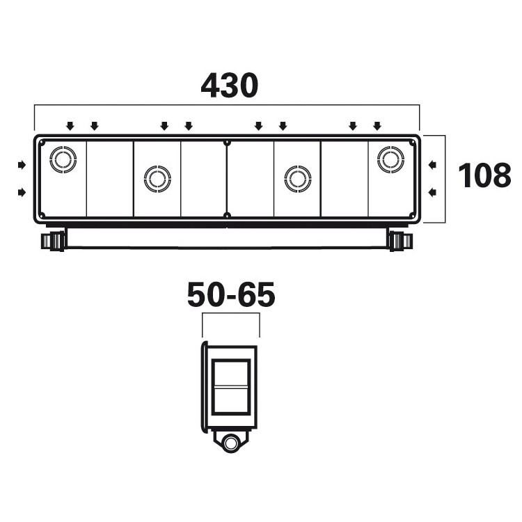 • Dimensioni: 430x108x65 (mm)