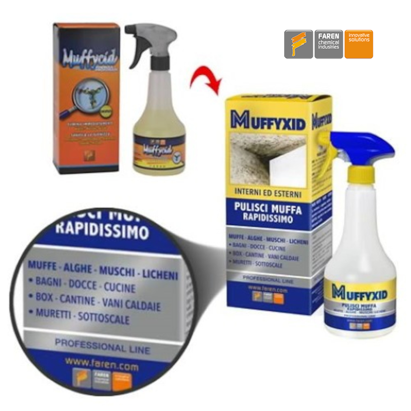 Prodotto professionale in formato spray da ml 500, potente in grado di eliminare la muffa i meno di 5 minuti e senza alcuna azione meccanica.