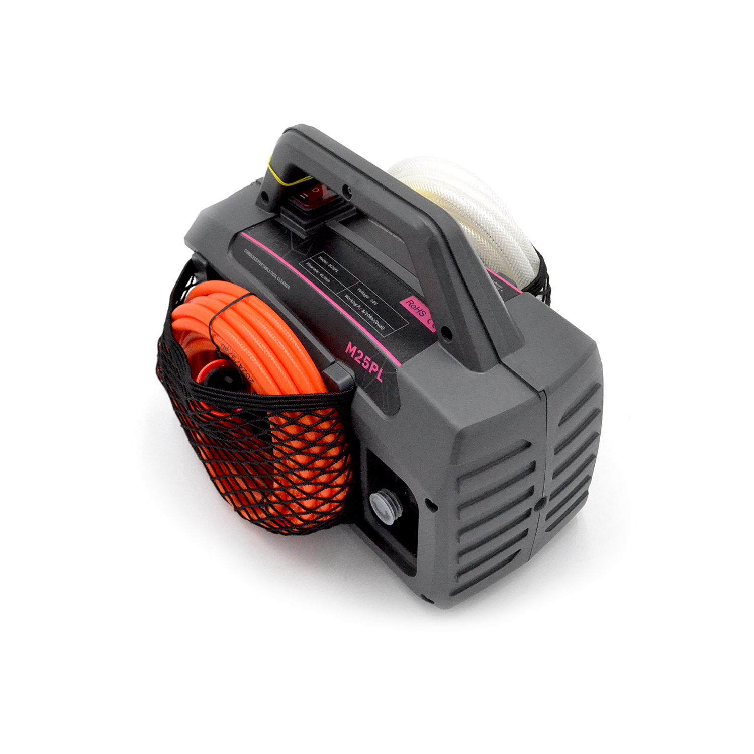Un altro vantaggio di M25PL è che gli operatori non devono preoccuparsi dell'alimentazione CA quando utilizzano questo dispositivo, in particolare quando puliscono i condizionatori d'aria esterni. Inoltre, per massimizzare l'uso delle batterie al litio esistenti da parte degli utenti, forniamo adattatori per batterie di marchi tradizionali sul mercato (Bosch, Makita, Panasonic, Milwaukee, Dewalt, Worx) per adattarsi alla batteria.